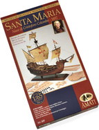 Kit de construcción de un modelo estático de barco, AMATI Santa Maria carabela de 1492 a escala 1:65. Uno de los tres barcos con los que Colón descubrió América y sigue siendo uno de los barcos más famosos en la historia de la marina. Las piezas de madera como la quilla y el forro están cortadas con láser, incluye velas, cuerdas, mástiles, herrajes. Las decoraciones están hechas de metal fundido dorado. Tres planos de construcción.