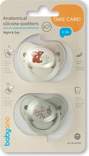 BABYONO Chupetes de silicona anatómicos 6-18m, 2 uds