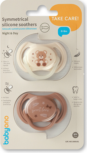 BABYONO Chupetes de silicona simétricos 0-6m, 2 uds