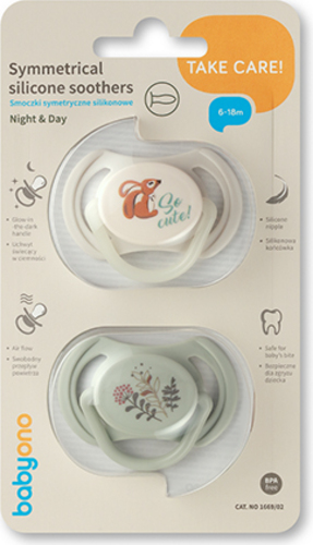 BABYONO Chupetes de silicona simétricos 6-18m, 2 uds