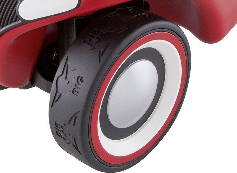 La barra de dirección, los reposabrazos y los reposapiés son desmontables, lo que permite al niño usar el coche como un correpasillos clásico.