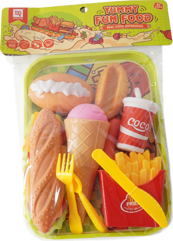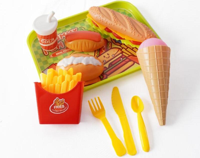 Juego de maquetas de plástico de comida rápida. Papas fritas, hamburguesa…