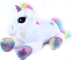 Hermoso unicornio de peluche blanco Funkie de 85 cm de tamaño, hecho de suave y delicado peluche de alta calidad.