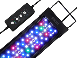 INVITAL Helio LED  es una moderna luz de acuario diseñada especialmente para acuaristas que buscan una combinación de rendimiento, diseño y facilidad de uso. La iluminación está equipada con LED de colores para una representación vívida de los colores de sus peces y al mismo tiempo con un controlador intuitivo que permite un fácil ajuste de brillo, modo y programas de tiempo. Gracias a los soportes ajustables, la iluminación es compatible con diferentes anchos de acuario. Diseño a prueba de agua INVITAL Helio tiene un cambio de construcción significativo en comparación con los tipos de iluminación convencionales: el vidrio de cobertura ha sido reemplazado por una capa de silicona resistente. Gracias a esto, los LED están 100% protegidos contra la evaporación del agua o caídas repentinas en el tanque. Excelente disipación de calor Gracias a su forma y los materiales utilizados, el cuerpo de la lámpara disipa eficazmente el calor. Este sistema de refrigeración pasivo asegura una temperatura de funcionamiento óptima para los chips LED, lo que no solo aumenta su eficiencia, sino que sobre todo prolonga significativamente la vida útil total de la luz. Chips LED de calidad En la iluminación INVITAL Helio LED se utilizan dos tipos de chips LED de alta eficiencia: 5050 y 2835. Los chips 5050 proporcionan una luz intensa y uniforme con un amplio ángulo de iluminación, mientras que los chips 2835 son más eficientes en términos de energía. Soportes ajustables La luz está equipada con prácticos soportes ajustables que permiten una fácil instalación en una amplia gama de acuarios. Gracias a la construcción deslizante, la longitud de los soportes se puede ajustar con precisión al ancho del acuario sin necesidad de un montaje complicado o el uso de herramientas. Modo de iluminación automático La iluminación incluye un control manual con una función incorporada de modo diurno natural: esta configuración ajusta los modos y niveles de iluminación durante 24 horas. Proporciona un encendido gradual, día activo, atenuación, modo nocturno y apagado automático. Controlador manual Controlar la iluminación con el control remoto es simple e intuitivo. Botón de función 24/7 - Este botón establece la hora actual para el modo de iluminación preestablecido durante todo el día. Si configuramos la iluminación a las 10:00, seleccionamos la misma hora en el controlador. (si no queremos que el modo se active antes o después) Botón de encendido/selección de modo - Al presionar este botón, se cambia la iluminación al modo manual. Al presionar nuevamente, se cambian los modos de color individuales (modo de color, degradado o todos los LED). Al mantener presionado el botón, la iluminación se apaga. Botón de ajuste de brillo - En el modo manual de iluminación, este botón se utiliza para cambiar el nivel de brillo. El brillo corresponde a los porcentajes visibles en el controlador. Botón de apagado automático - En el modo manual, la iluminación se puede programar para un intervalo específico de encendido (6, 10 o 12 horas). Al seleccionar este programa, la iluminación se apagará después de que transcurra el intervalo de tiempo seleccionado. Al día siguiente, se volverá a encender a la hora en que se configuró este modo. Parámetros técnicos Modelo                      Dimensiones          Para acuarios        Número de LED            PotenciaINVITAL Helio 30  26 x 9,5 x 3 cm      30 - 45 cm       60                   12WINVITAL Helio 45  40 x 9,5 x 3 cm      45 - 60 cm       90                   18WINVITAL Helio 60  56 x 9,5 x 3 cm      60 - 80 cm      120                  24WINVITAL Helio 80  75 x 9,5 x 3 cm      80 - 100 cm    150                  30WINVITAL Helio 100 95 x 9,5 x 3 cm    100 - 120 cm    180                36WINVITAL Helio 120 115 x 9,5 x 3 cm  120 - 140 cm    210                42W
