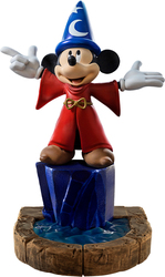 La figura Mickey Fantasia DLX – Disney Fantasia – Art Scale 1/10 de Iron Studios muestra al joven aprendiz de mago Mickey en la cima de un pilar de roca cristalizada, dirigiendo con entusiasmo las olas de agua – en una túnica roja y un sombrero mágico. La rica base diorama está llena de detalles y referencias cinematográficas, incluyendo escobas humanoides que llevan cubos de agua. La figura está inspirada en la parte más famosa de la película animada Fantasia (1940) de Walt Disney Studios, basada en el poema “L'Apprenti Sorcier" (El aprendiz de brujo) de Johann Wolfgang von Goethe, con una composición sinfónica de Paul Dukas. Lanzada con motivo del 100 aniversario de Disney.