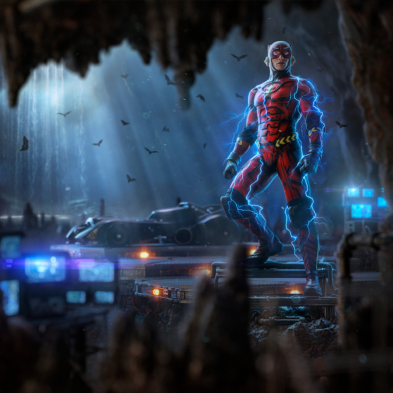 El más joven Barry Allen de una realidad alternativa se encuentra en una situación en la que debe improvisar para convertirse en un héroe. Inspirado por su yo mayor, modifica y adapta uno de los trajes de Batman, creando una versión única del corredor escarlata. Esta figura de colección de Iron Studios captura al joven Barry en una base metálica que evoca el entorno tecnológico de la Batcueva, la base secreta del Caballero Oscuro.
