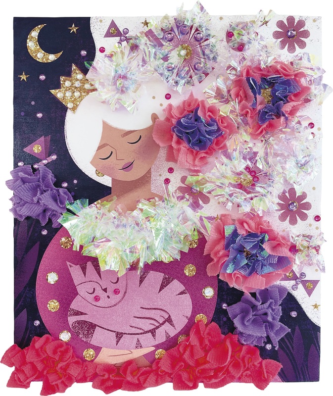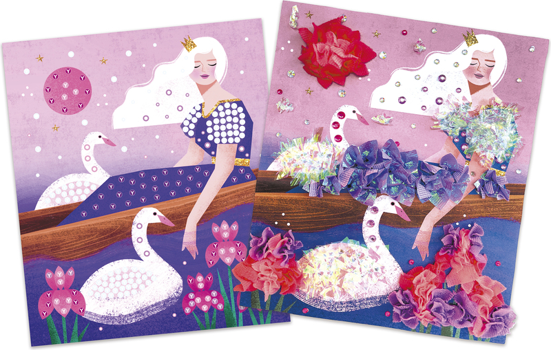 ¡Crea un vestido de volantes para una princesita! Este kit de creación incluye 2 imágenes que se pueden decorar con trozos cuadrados de papel de seda.Contiene 2 bases de espuma (grosor 5 mm, 26 x 24,3 cm), agujeros precortados en forma de Y para perforar el papel de seda, 200 cuadrados de papel de seda para perforar, 200 cuadrados de papel de seda arcoíris para perforar, 1 herramienta de plástico para perforar los trozos de papel de seda en las bases, 150 piedras (3 colores y 3 tamaños diferentes) y 1 folleto con instrucciones y patrones.