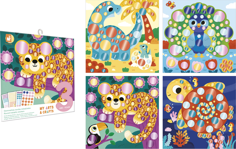 Janod My arts&crafts Mini Pegatinas redondas brillantes Tigre y amigos a partir de 3 años