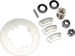 Kit de reparación de embrague de disco HD de Traxxas. Contiene: disco de acero, placas de presión de aluminio (3), resorte, pasador 2 x 9.8 mm, arandela 5 x 8 mm, tuerca autoblocante de 5 mm y 4 mm.