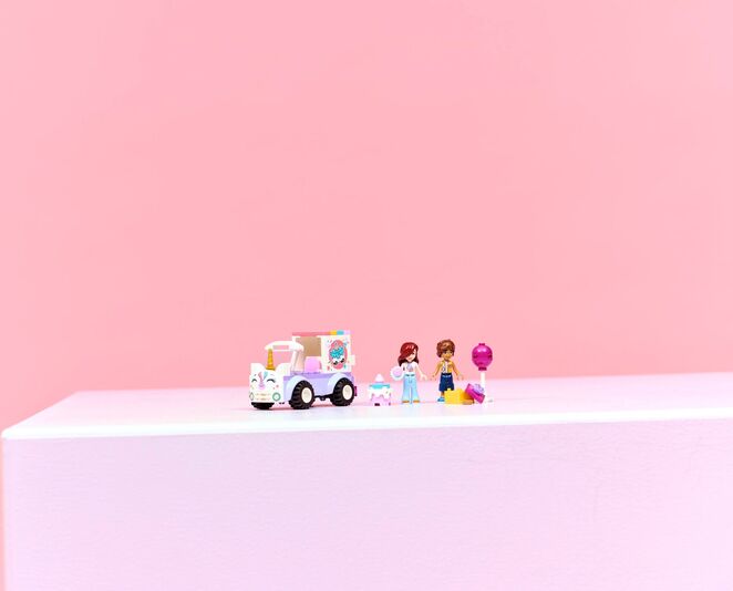 ¡Inspire a los niños a partir de 4 años para que construyan sus propias historias llenas de detalles de unicornios y sorpresas de cumpleaños! Con el juguete LEGO® Friends Camión de entrega de unicornio con pastel (42675), las niñas y los niños pueden construir un adorable camión con temática de unicornio y salir a vivir horas de juegos aventureros con personajes. El paquete incluye 2 mini muñecas, Paisley y Leo, que inspiran la creatividad de los más pequeños y los guían a jugar diferentes escenas.