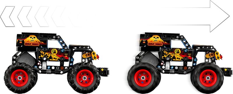 - JUGUETE MONSTER JAM™ GRAVE DIGGER™ – Diviértete con el camión LEGO® Technic Monster Jam Grave Digger Fuego y Hielo (42219) para niños y niñas a partir de 7 años