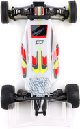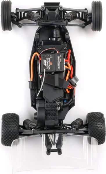El chasis de la buggy Micro-B se utiliza por primera vez en vehículos micro. El chasis Micro-B está inspirado en la buggy de carreras TLR que ganó el campeonato, incluye una superficie deslizante frontal y laterales elevados, lo que proporciona una base sólida para una conducción salvaje.
