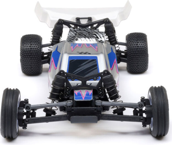 Losi ha llevado los coches micro a otro nivel con el Micro-B. No solo se parece a la buggy que ganó el campeonato mundial IFMAR 2023, sino que también incluye amortiguadores de aceite para una óptima manejabilidad y saltos durante las carreras. Los amortiguadores se pueden ajustar cambiando la viscosidad del aceite, los resortes o utilizando las arandelas incluidas.