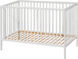 ¡ATENCIÓN! Utilice la cuna exclusivamente de acuerdo con las instrucciones de montaje y uso adjuntas. Antes de cada uso, verifique que todos los tornillos, uniones y elementos estructurales estén bien apretados y sin daños. No utilice la cuna si alguna de sus partes está rota, suelta o falta. Utilice exclusivamente un colchón de 60 × 120 cm y de altura adecuada, para evitar espacios entre el colchón y el marco de la cuna. No utilice más de un colchón a la vez. No coloque en la cuna objetos que puedan servir como escalón o representar un riesgo de asfixia (cojines, juguetes grandes, cuerdas, etc.). No coloque la cuna cerca de fuentes de calor, fuego abierto ni otros objetos potencialmente peligrosos. Nunca deje al niño sin supervisión.