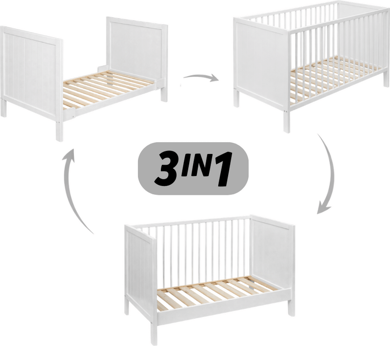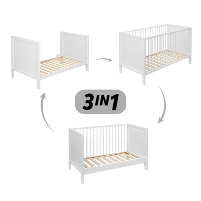 PETITE&MARS Cuna de madera Mila 3 en 1 White Wood 120x60 cm