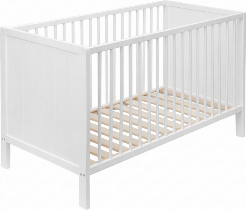 La cuna tiene unas dimensiones internas de 60 × 120 cm, que proporciona suficiente espacio para un sueño cómodo tanto para el bebé como para un niño pequeño. El somier se puede ajustar en tres posiciones de altura, lo que permite que la cuna se adapte fácilmente a la edad y desarrollo del niño. La posición más alta facilita la manipulación con el recién nacido, mientras que las posiciones más bajas aumentan la seguridad cuando el niño comienza a sentarse o ponerse de pie. Los barrotes laterales son firmes e inseparables, lo que mantiene la estabilidad y seguridad. La cuna también incluye un panel lateral de soporte que permite un uso más flexible de la cuna en las siguientes etapas del crecimiento del niño.