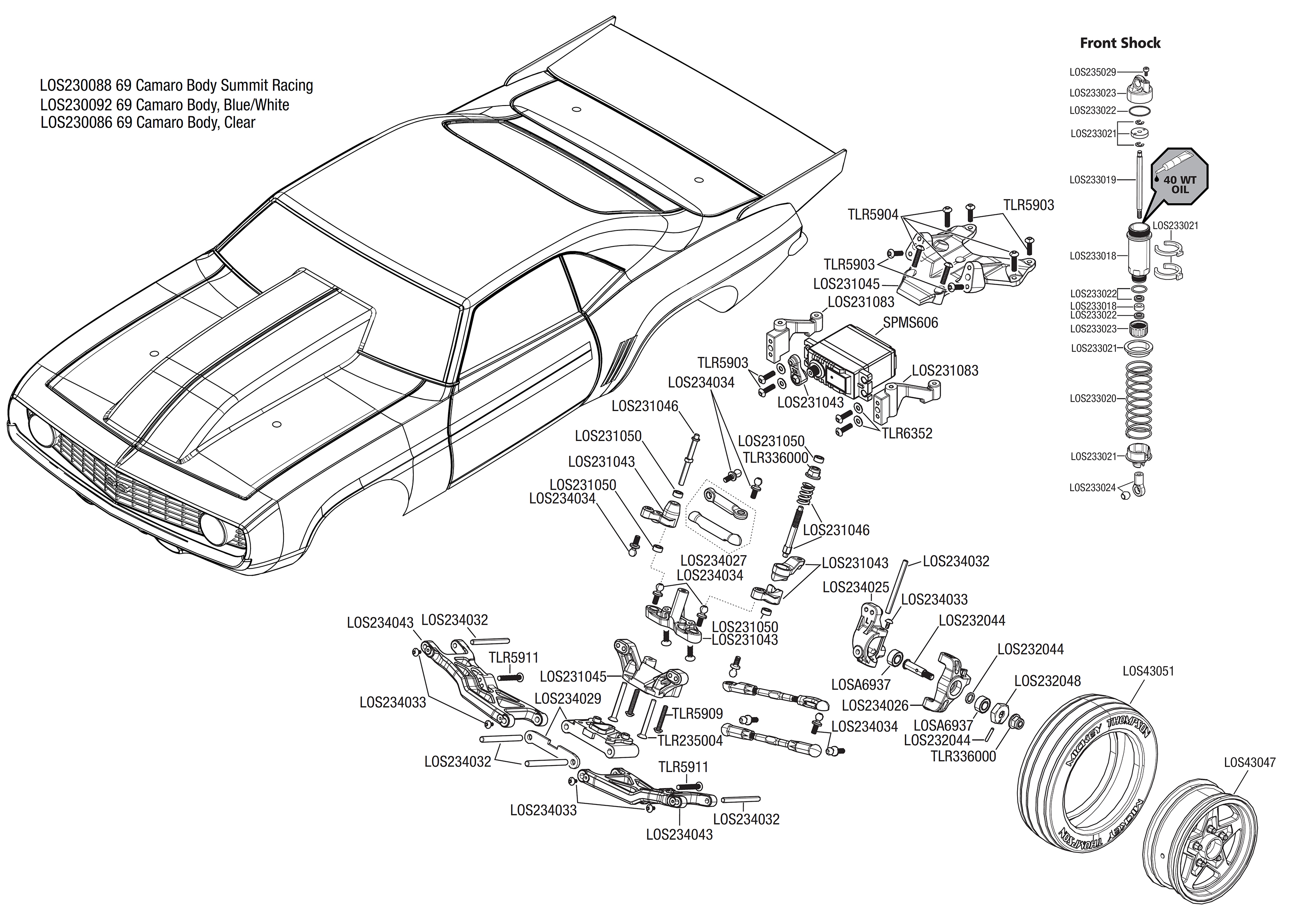 Para el producto Losi 22S Dragster 1:10 1969 Camaro RTR azul