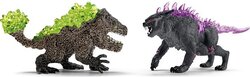 El lince sombrío abre sus enormes mandíbulas de manera aterradora y revela sus poderosos colmillos. Sin embargo, el triturador de piedra no retrocede ni un paso. Al contrario: se acerca con sus poderosas patas garras y agita amenazadoramente su gruesa cola de un lado a otro. Esta está salpicada de cristales transparentes, que podrían ser bastante peligrosos para el atacante. Luego, el lince sombrío levanta su enorme pata e intenta asestar un golpe con sus afiladas garras. Sin embargo, este se aparta inesperadamente rápido y enseña los dientes. ¡Es difícil decir quién será el vencedor!