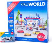 El salón de autos con una pared trasera de colores ofrece espacio para estacionar hasta tres vehículos + un cochecito descapotable Porsche 911 Turbo (1337) como regalo gratis. ¡Crea un nuevo escenario de juego para cada día para autos nuevos y usados! Las amplias puertas de vidrio permiten una fácil entrada y salida. El Porsche Carrera GT estacionado se ve fantástico en el escenario giratorio del salón de autos. La placa de juego estándar SIKU permite una fácil conexión con el conjunto SIKUWORLD. Los vehículos pueden simplemente moverse por todo el mundo SIKU hasta el lugar deseado. El auto es parte del paquete. Dimensiones de la superficie de juego: 270 x 350 mm Dimensiones del paquete: 276 x 276 x 45 mm Edad: 3+SIKU World - salón del automóvil + regalo