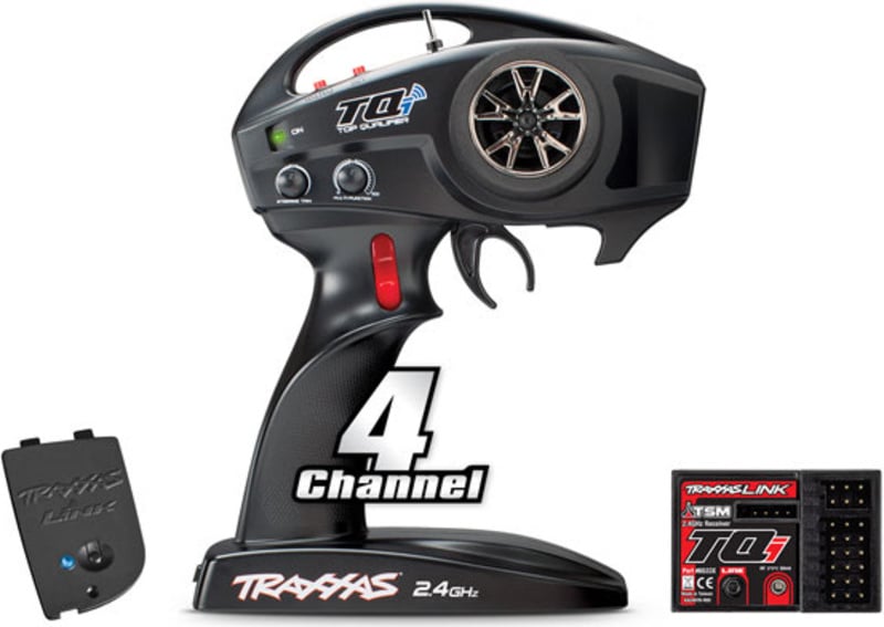 Štyr kanálová RC súprava Traxxas TQi v pásme 2.4 GHz s telemetriou, nově s revolučným bezdrôtovým BlueTooth prenosom dát do vášho zariadenia s operačným systémom Apple iOS (iPod, iPod, iPhone, ...) alebo s Androidom (Samsung Galaxy S...). Môžete tak nielen prehľadne nastavovať parametre vysielača, ale v reálnom čase vidieť všetky telemetrické údaje. Päť kanálový prijímač so stabilizáciou Traxxas Stability Management