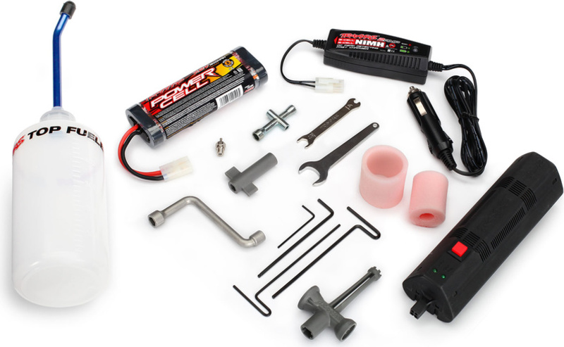Aunque el modelo es impulsado por un motor de combustión, el receptor, el servo de dirección y el servo de freno/acelerador deben ser alimentados por una batería. Los componentes se pueden alimentar con baterías desechables de calidad o con una batería recargable.