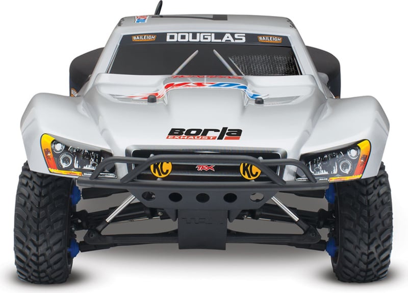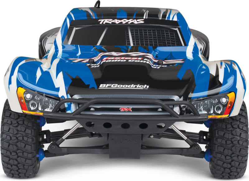 El modelo de coche RC Racing Short Course Truck Slayer Pro 4x4 es una herramienta de primera para la victoria. Está impulsado por un potente motor de competición TRX 3.3 con escape ajustado, el chasis rígido está hecho de aluminio 6061-T6 anodizado en azul de 3 mm de grosor. Los neumáticos todoterreno proporcionan la máxima adherencia en el terreno. El coche RC Traxxas Slayer tiene una gran altura libre que le permite atravesar las mayores irregularidades. Slayer Pro tiene una aceleración increíble y un gran manejo en la pista gracias a su tracción 4WD y su gran distancia entre ejes. ¡Alcanza velocidades de hasta 80 km/h!