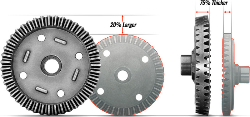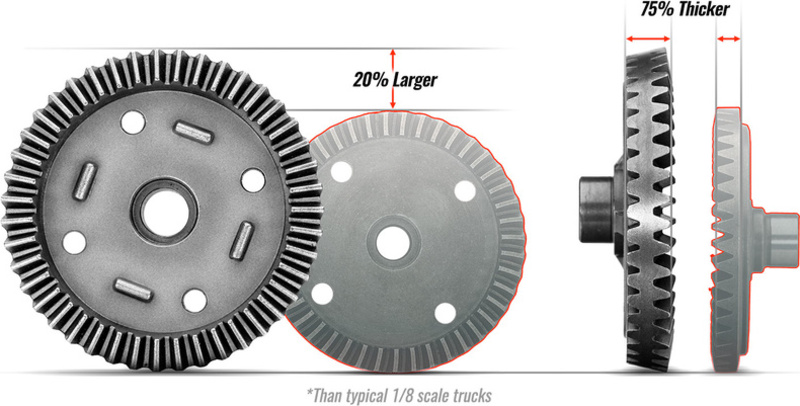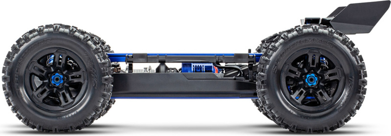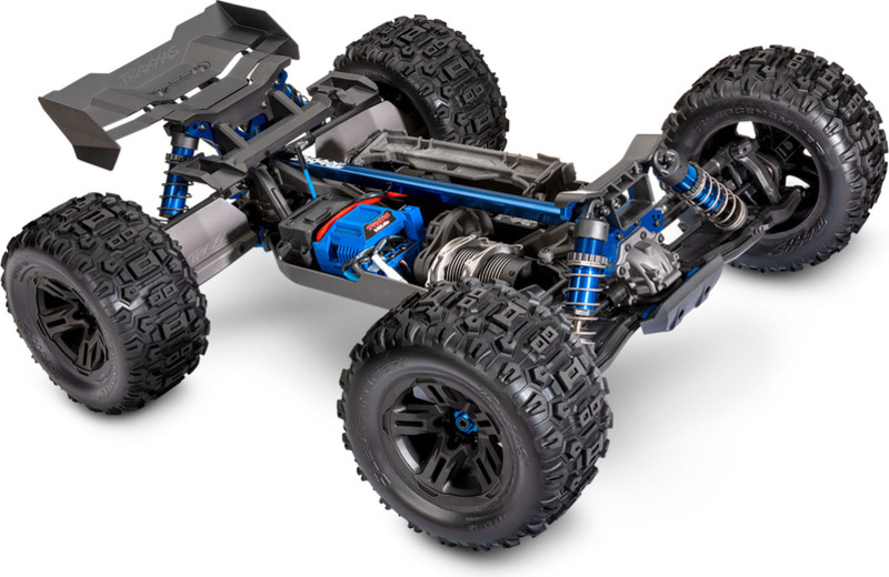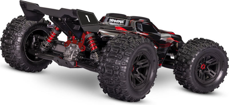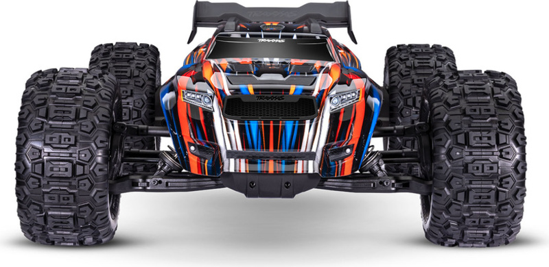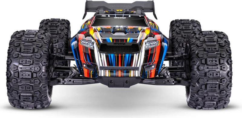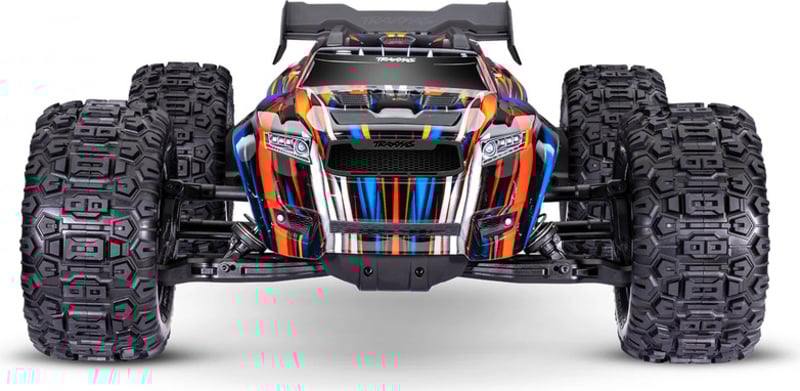 El modelo utiliza ruedas de radios de 3.8" con neumáticos SledgeHammer de 6.7", inspirados en el motocross. El alto y rígido diseño de la banda de rodadura asegura una larga vida útil y durabilidad. Estos neumáticos tienen un sistema de conexión mejorado con la rueda. Hasta ahora, estos neumáticos estaban disponibles en los modelos Traxxas como piezas de tuning. ¡Ahora ya están incluidos de serie para este modelo!