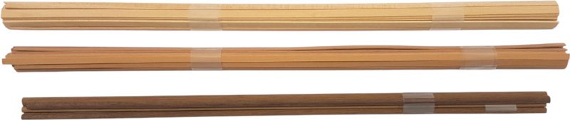 - Listones de madera de nogal para el mástil, la botavara y los estays